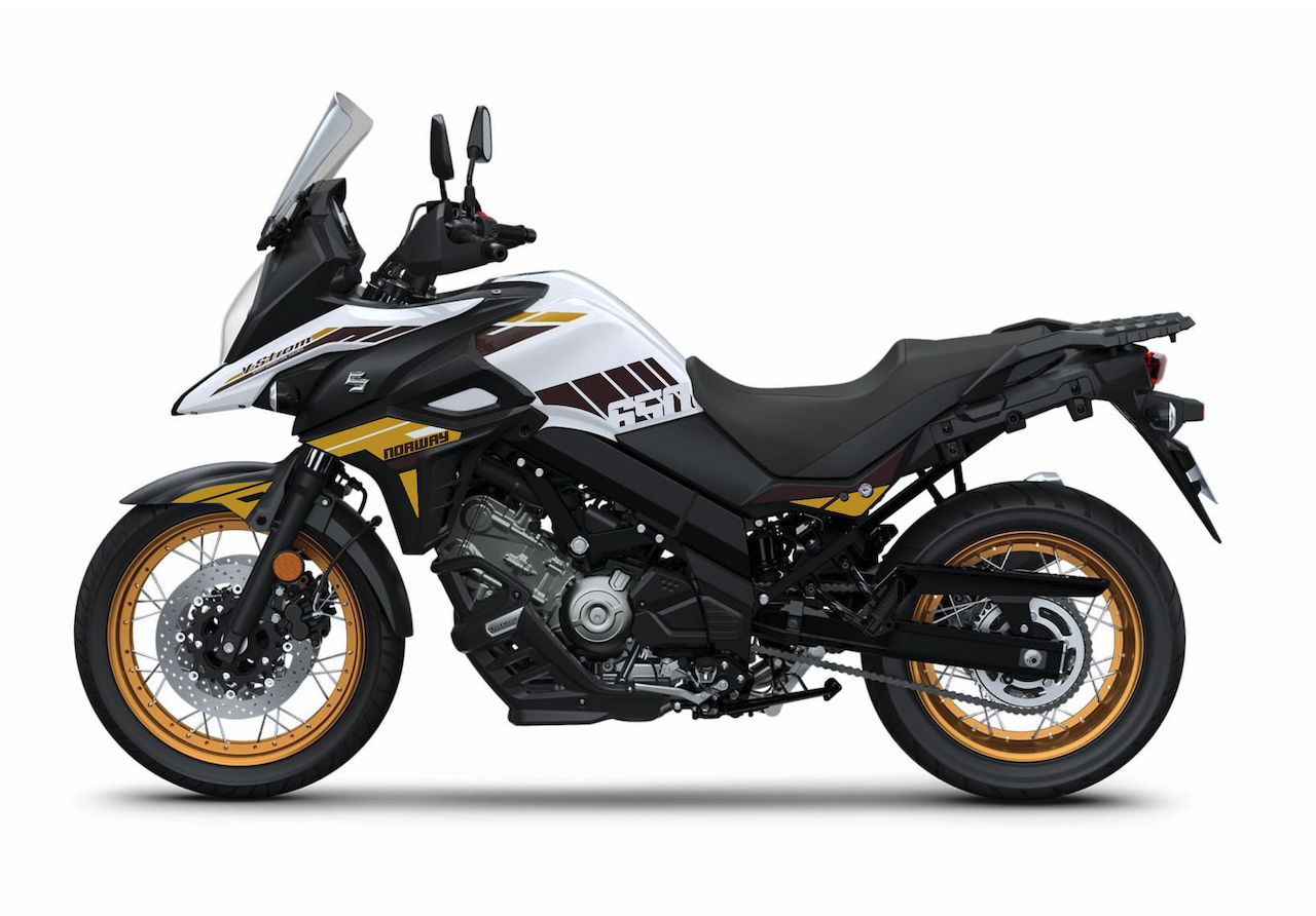 Kit d'autocollants permettant de personnaliser complètement sa moto (attention, les décos sur les jantes sont une option à prendre ici : https://burnoutdesign.com/collections/jantes-suzuki/products/decoration-jantes-camouflage-freeride