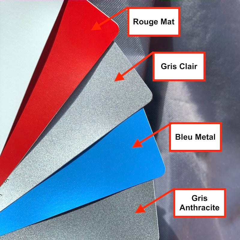 Couleurs disponibles : ATTENTION : Il faudra nous préciser la couleur n°2 (la couleur du liseré) par message / mail séparé.